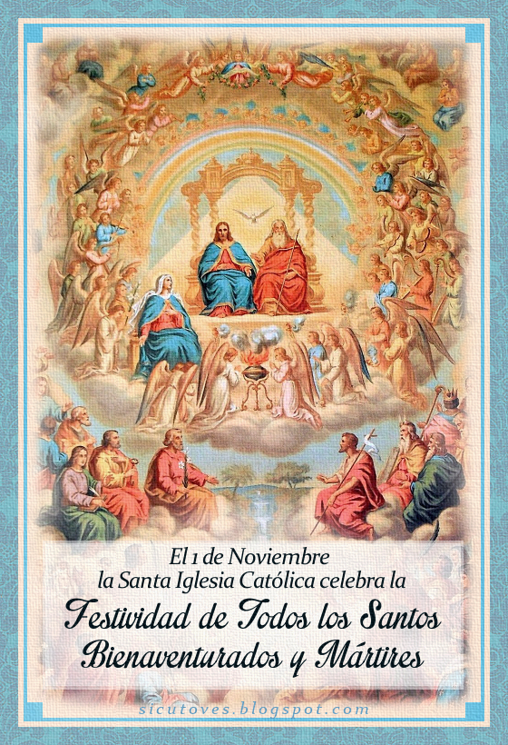 Hemos acompañado ya en su Triunfo a los Santos en el Cielo; pero aquí en la tierra tenemos todavía sus cuerpos, que fueron templo del Espíritu Santo, que le sirvieron dócilmente para realizar actos heroicos y que un día han de resucitar para participar, juntamente con las almas, de la Bienaventuranza Eterna. La Festividad de los Santos se completa con esta de las Sagradas Reliquias, que se celebra dentro de la Octava.