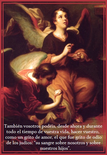 También vosotros podéis, desde ahora y durante todo el tiempo de vuestra vida, hacer vuestro, como un grito de amor, el que fue grito de odio de los judíos: “Sanguis eius super nos et super filios nostros“; “su sangre sobre nosotros y sobre nuestros hijos”.
