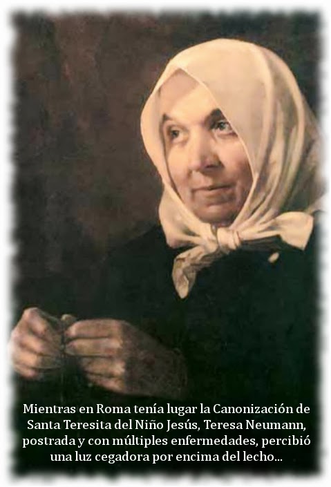 Todo ocurrió cuando Teresa Neumann rezaba el Rosario: al comenzar la segunda decena de los Misterios Gloriosos, percibió una luz cegadora por encima de su lecho. Con el bastón del que se ayudaba, golpeó para llamar a la familia, que llegó alarmada a la habitación de la pobre enferma. Teresa pregunta por el sacerdote y salen presurosos a buscarlo. Teresa está erguida en la cama, en una posición que no había tomado hasta entonces.