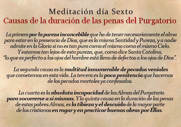 Novena en sufragio de las Benditas Almas del Purgatorio. Día 6 Causas de la duración de las penas del Purgatorio